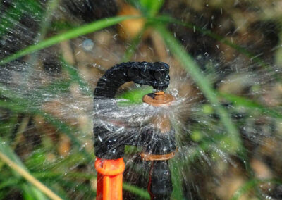 - Goteros (integrados en la tubería o no), o microaspersores si es preciso.